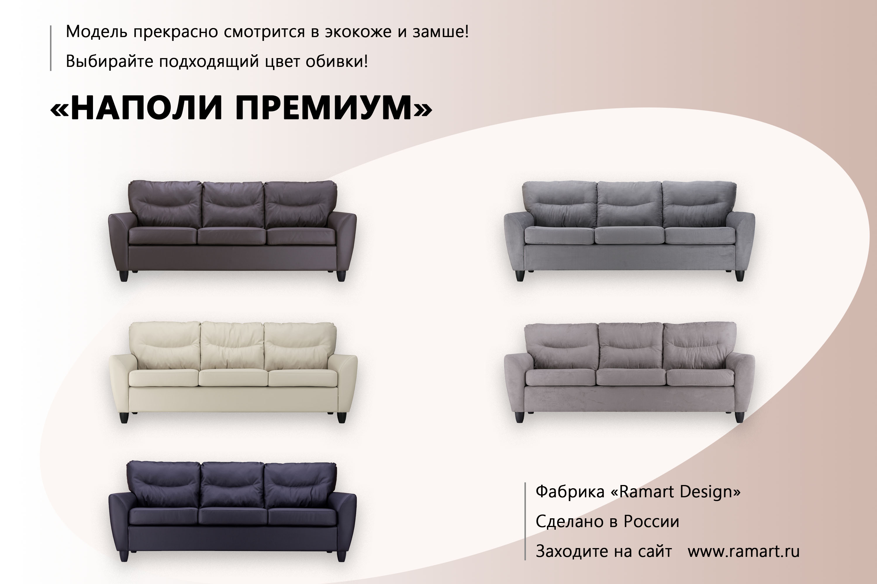 При заказе по городу Москва и городу Раменское, готовые диваны со склада фабрики "Ramart Design" и "Мастерские Комфорта" вы можете оплатить следующим способом: